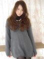 中間からのラフなカールと透き通るダークトーンのモカブラウンが◎。エアリーな質感はスプレー系のスタイリング剤を使用。スウィートカジュアルな雰囲気もでますよ☆住道店打越 裕樹