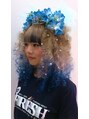 凄く個性的に仕上げました♪ホワイトブリーチしてグレーのカラー&グレーのエクステ45本付けて原色カラーでグラデーションにしてからスパイラルに巻きました☆時間はかかりますが可愛いです♪