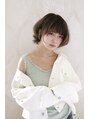 オリーブグレージュ×襟足ちょいハネショートスタイル。ショート女子にオススメです。白デニムジャケットやペールトーンのインナーとの相性もばっちりです。透明感アップなショートスタイルです!