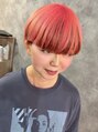 こちらのアンブレラカラーはブリーチ2回でペールピンクを入れています。内側はオレンジブラウンにすることでコントラストを楽しむことができます。