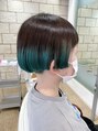 サイドからバックの内側は刈り上げているボブスタイル。カラーはブリーチ後に塩基性カラーを乗せて個性的に仕上げました。ブリーチは2回した方がより鮮やかな色が入りやすくなります。