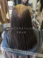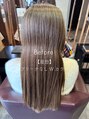 ダブルカラー履歴を活かし、伸びた根元はブリーチなしで明るくして赤みを抑えた柔らかい透明感カラーのベンダーグレージュに。暗すぎず、光に当たるとほんのりラベンダーを感じる上品な色味です。「ブリーチはしたくないけど透明感が欲しい」方におすすめ!