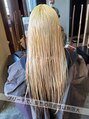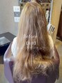 セルフブリーチや複数回の履歴で複雑になったベースを、全体ブリーチで整えトーンアップ。残留色素やムラをコントロールし、ゴールドベージュで柔らかく艶のある透明感カラーに。ハイトーンでも上品に垢抜けたい方におすすめ◎