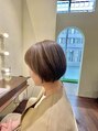 寒色系グレーをベースに透明感のある髪色にしつつ表面の髪を少し長く残し丸みのあるショートスタイルにしました。