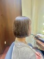 丸みを感じるシルエットのラインになっています。カラーは白髪染め不使用で白髪を馴染ませる白髪馴染ませカラーをさせて頂い、透明感を感じる髪色にさせて頂きました。