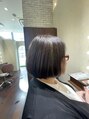 丸みを感じるシルエットで生際ギリギリの長さでカットさせていただいたミニボブスタイルになっています。カラーは白髪染め不使用で白髪を馴染ませる白髪馴染ませカラーをさせて頂いて地毛にちかい髪色にさせていただきました。