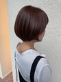 お客様スタイルです☆まるみのついたショートボブで、オレンジよりの暖色です。柔らかい髪質なのでさらにツヤが出ていました^^前髪はシースルー気味に作って、サイドバングで繋げています。
