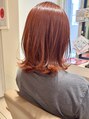 深みのあるオレンジレッドで、ツヤと血色感を引き出した暖色カラー。派手すぎず上品な色味なので、初めての暖色系にもおすすめです。毛先は軽く動きを出し、ナチュラルでも女性らしさのある仕上がりに。