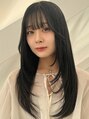 骨格に沿う顔まわりレイヤーで小顔見え。ネイビー寄りのブルーブラックで赤みオフ。ウルトワで内部補修し艶となめらかさUP。ブリーチなしでも透け感と色持ちを両立。