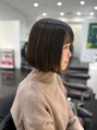 赤みを抑えたグレージュカラーで、柔らかく透明感のある艶髪に。光に当たるたびに上品なツヤが出て、ボブスタイルでも重く見えないのがポイント◎ナチュラルだけど垢抜けたい方におすすめの透明感カラーです。