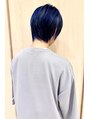 メンズショートボブスタイル、レイヤーを入れて軽めな印象にサイド、バックは短すぎないように。カラーはダブルカラーのブルーを入れました。