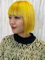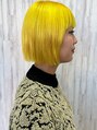 目を引くビビッドなレモンイエローが主役のボブスタイル。切りそろえた前髪とシャープなラインが、カラーの鮮やかさを最大限に引き立て、個性とモード感を両立した仕上がりに!