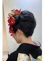おめでとうございます。成人式。ショートヘアに振袖姿。大きな髪飾りもよくマッチしています。とてもお似合いでした。ありがとうございました。