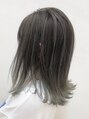 バレイヤージュ風にハイライトを使いブリーチベースにアディクシーのマッドグレージュをカラーリング(^^♪何でもご相談ください!!