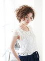 シャープになりやすい前下がりボブを流れるようなゆるいウェーブと動きを出す細かいウェーブを組み合わせて透明感を出したスタイリッシュショートボブ