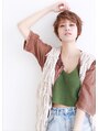 小顔に見える厚めバングで斜めバング。流し前髪の大人かわいい、毛先のみアンニュイカール。モダンショートとグレージュショートなスタイルです。無造作な毛先はワンカールで巻いてます。前下がりだけどマッシュなスタイルで黒髪でも似合います。