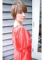 小顔に見える厚めバングの斜めバング。流し前髪の大人かわいい、毛先のみアンニュイカール。モダンショートとグレージュショートの混ざったスタイルです。無造作な毛先はワンカールで巻いてます。前下がりだけどマッシュなスタイルで黒髪でも似合います