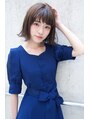 アゴラインのワンレングスボブに透け感があるグレージュでツヤっと女性らしい雰囲気に*少し前下がりにカットしてるのでより首元スッキリで小顔効果です。