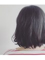アゴラインの切りっぱなしボブ。ダークトーンのアッシュで艶を出し、毛先は外巻きと内巻きを交互にMIXしてコテで巻いてアレンジ