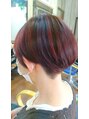 ツーブロック女子!!上部分は長めにおくことで、メンズっぽくなりすぎないけどスッキリと!ハイライトで『赤』をつくりより立体感、動きが出やすいように。乾かすだけでまとまりやすいです。