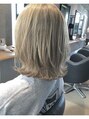 お客様スタイルです。ブリーチ経験ありで根本ブリーチとオンカラーで黄色味を少し抑えたベージュとなっております。カットはあご下5センチのボブで外ハネしやすいようレイヤーをつけてあります!