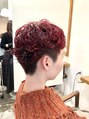 外国人のくせ毛みたいなパーマにピンクを入れたコンパクトなマッシュショートです^^刈り上げをハサミを使ってすることで厚みを程よく残してボーイッシュすぎないようにしています。ピンクは根元をグラデーションにしたデザインカラーで雰囲気◎