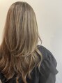 ニューヨークドライカットでくせ毛を活かした毛流れ綺麗なロングレイヤー! 白髪ぼかしハイライト×ミルクティーベージュでより柔らかさとしなやかな動きが出るようにしました(^ ^) 根元が伸びてきても白髪が気になりにくく、お好みの色味も楽しめる♪