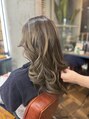 くせ毛を活かすロングレイヤー ハイライト ミルクティーカラー