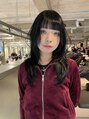 顔まわりから後ろにかけてレイヤーを入れたスタイルで前髪はパツっとした重ためのラインを作っています。色味は光に当たると青くなるような黒色のカラーリングにしています。