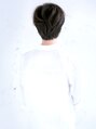 前髪から顔まわりにかけて長さを残し、バックはすっきりとまとめたコンパクトなスタイルだからこそ、ノンパーマでプレーンに。