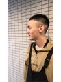 メンズ、ボウズ、フェード、1.5mmから。トップには少し長さを残して。境目は少しラインが出るくらいに長さに差をつけました。
