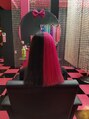 原色派手髪 ツートン 原色ピンク ブラック