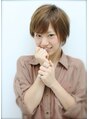 ボーイッシュすぎない、可愛い万能ショート☆タイトなシルエットと、ほわっとしたやさしい表情を引き立ててくれるバングがポイント。カラーはアッシュベージュです。