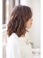 トップからのひし形シルエットで抜け感ニュアンスパーマでラフスタイルに♪柔らかい雰囲気でモテかわ女子に☆前髪は重めバングが大人かわいいポイントです。