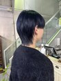 カラーはブルーブラックです!暗めで深いブルーを入れています!色落ちはグレージュからミルクティーっぽく抜けていきます!カットはマッシュウルフにカットしています!