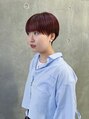 カラーはレッドブラウンです!深めに入れたカラーは発色もいいので可愛いです!カットは刈り上げたマッシュショートスタイルです!丸みの可愛いスタイルです!