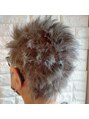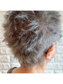 毛先はスパイキーに、動物の毛並みのように自然な柔らかさを表現し、スタイリング剤をつけザックリした感じに仕上げる。カラーリングは、白髪をしっかり染めるのではなく、白髪を生かして鮮やかな色でぼかすカラー。