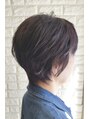 ダイヤモンドグラデーション。襟足はタイトにスッキリさせ、トップにボリュームを出し、サイドは小顔効果のある長さに設定。後頭部は丸みを出し、くびれをつくり、グラマラスにしたショートスタイル。オイルグロスカラー」イノア」で艶々に。