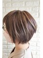 グラデーションボブ。襟足はタイトにスッキリさせ、トップにボリュームを出し、サイドは小顔効果のある長さに設定。後頭部が形良く見えるように。イノアカラーとハイライトの組み合わせで立体的に。