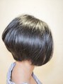 グラデーションボブ。襟足はスッキリさせ、前下がりのショートボブスタイル。頭の形が良く見えるように後頭部を丸くさせる。イノアカラーとファイバープレックスの組み合わせで艶感アップ。