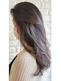 顔周りレイヤーロング。顔周りに部分的にレイヤーを入れたスタイル。赤みをおさえた、イノアカラーのグレージュでカラーリング。インナーカラーとフレームは色味と明度を変え、ナチュラルなアクセント。