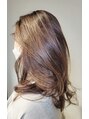ロングレイヤー。サイドからバックにかけラウンドさせたローレイヤー。イノアカラーとケラスターゼカクテルトリートメントの組み合わせで艶々サラサラに。
