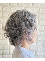 グラレイヤーウェーブ。グラデーションレイヤーにクリープパーマをかけたスタイル。ヘアマニキュアのペールアッシュをかぶせて、白髪を活かしてオシャレに。