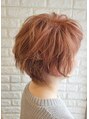 グラレイヤー。グラデーションボブとレイヤーの組み合わせショートスタイル。明るいイノアカラーとハイライト、イヤリングカラーの組み合わせ。メタルDX で前処理し、ケラスターゼカクテルトリートメントで後処理し、髪は艶々に。