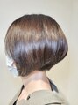 前下がりグラデーションボブ。襟足はスッキリさせ、後頭部は丸く頭の形が良く見えるように。サイドは小顔効果のある長さに設定した前下がりボブスタイル。イノアカラーとファイバープレックスの組み合わせ。