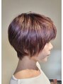 ダイヤモンドグラデーション。襟足はタイトにスッキリさせ、後頭部は丸く頭の形が良く見えるように。サイドは小顔効果のある長さに設定。イノアカラーとハイライト、イヤリングカラーの組み合わせ。メタルDX とケラスターゼカクテルトリートメント施術。