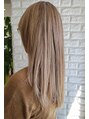 顔周りレイヤーロング。明るいイノアカラーとハイライトの組み合わせ。前処理にファイバープレックス、後処理にケラスターゼカクテルトリートメント施術で、髪を傷めずにサラサラヘアに。