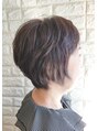 ショートレイヤー。襟足はタイトにスッキリさせ、サイドは小顔効果のある長さに設定、トップにボリュームをだし、後頭部は丸く頭の形が良く見えるように。