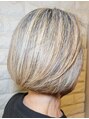 レイヤーボブ。アゴラインのボブスタイル。全体を染めずにハイライトのみを細かく入れて、白髪ぼかしカラー。ケラスターゼカクテルトリートメントでアフターケア。