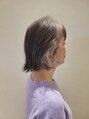 外ハネボブ。酸性ストレートでナチュラルなストレートスタイルに。毛先は外に軽くハネさせ動きをつくる。ケラスターゼカクテルトリートメントでアフターケア。
